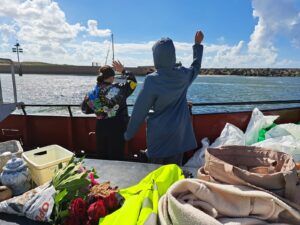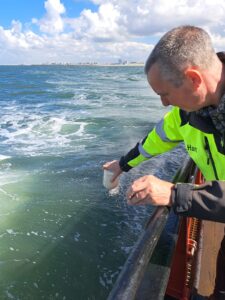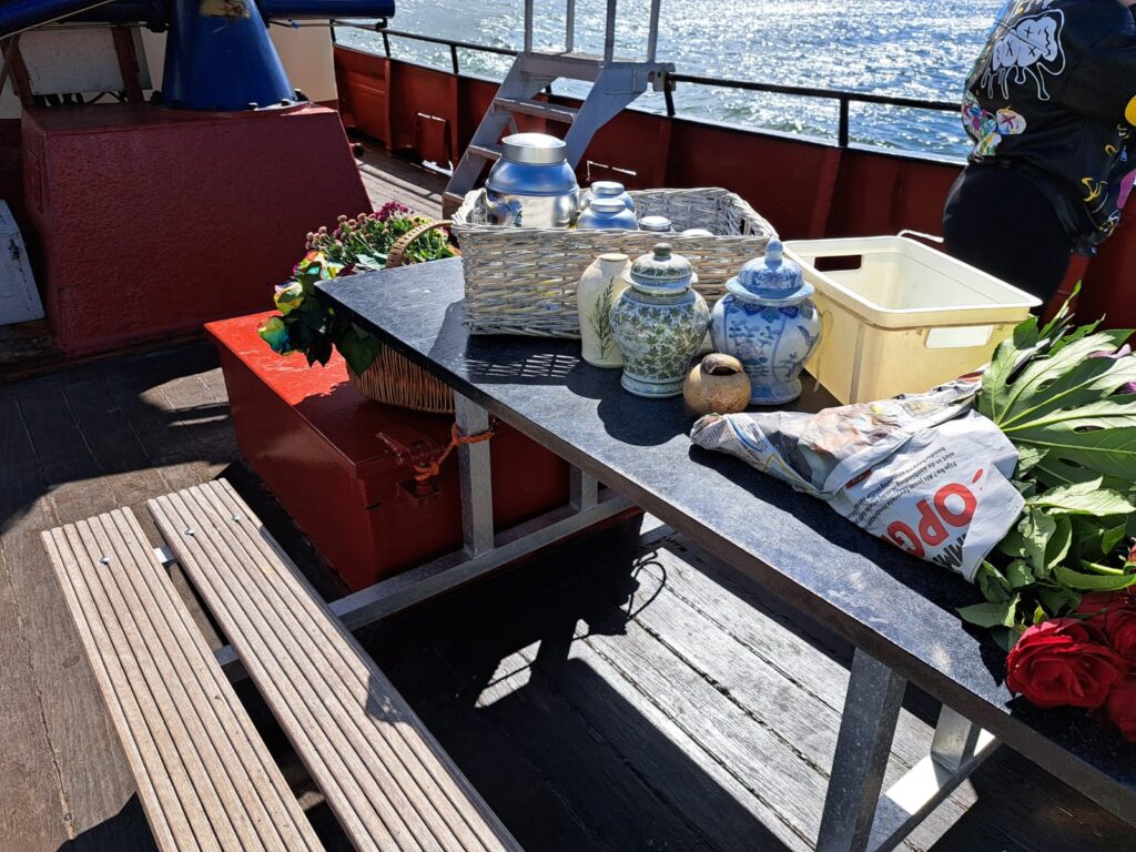 Elk jaar varen we een aantal keer uit vanuit Scheveningen de Noordzee op. Daar strooien wij de as uit van alle diertjes die bij ons in groepjes zijn gecremeerd. Dit doen wij met onze medewerkers, onze vrijwilligers, maar ook met vrijwilligers van andere Dierenambulances zoals die van Den Haag, Leiden en Delft (De Wijs).