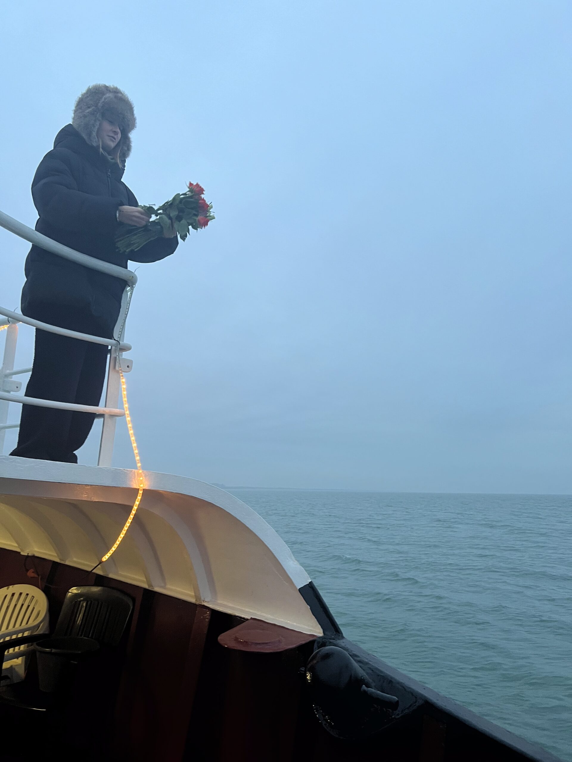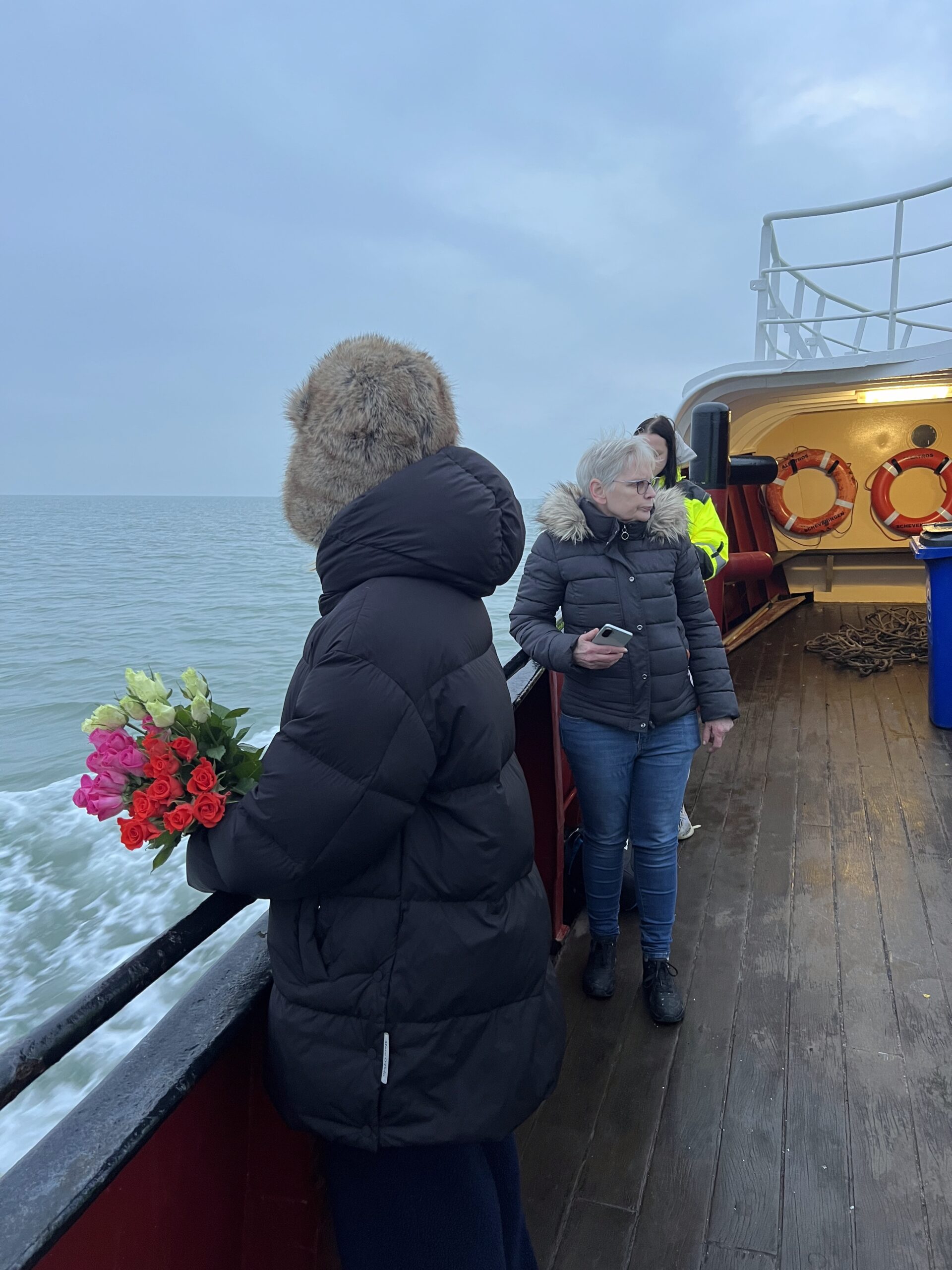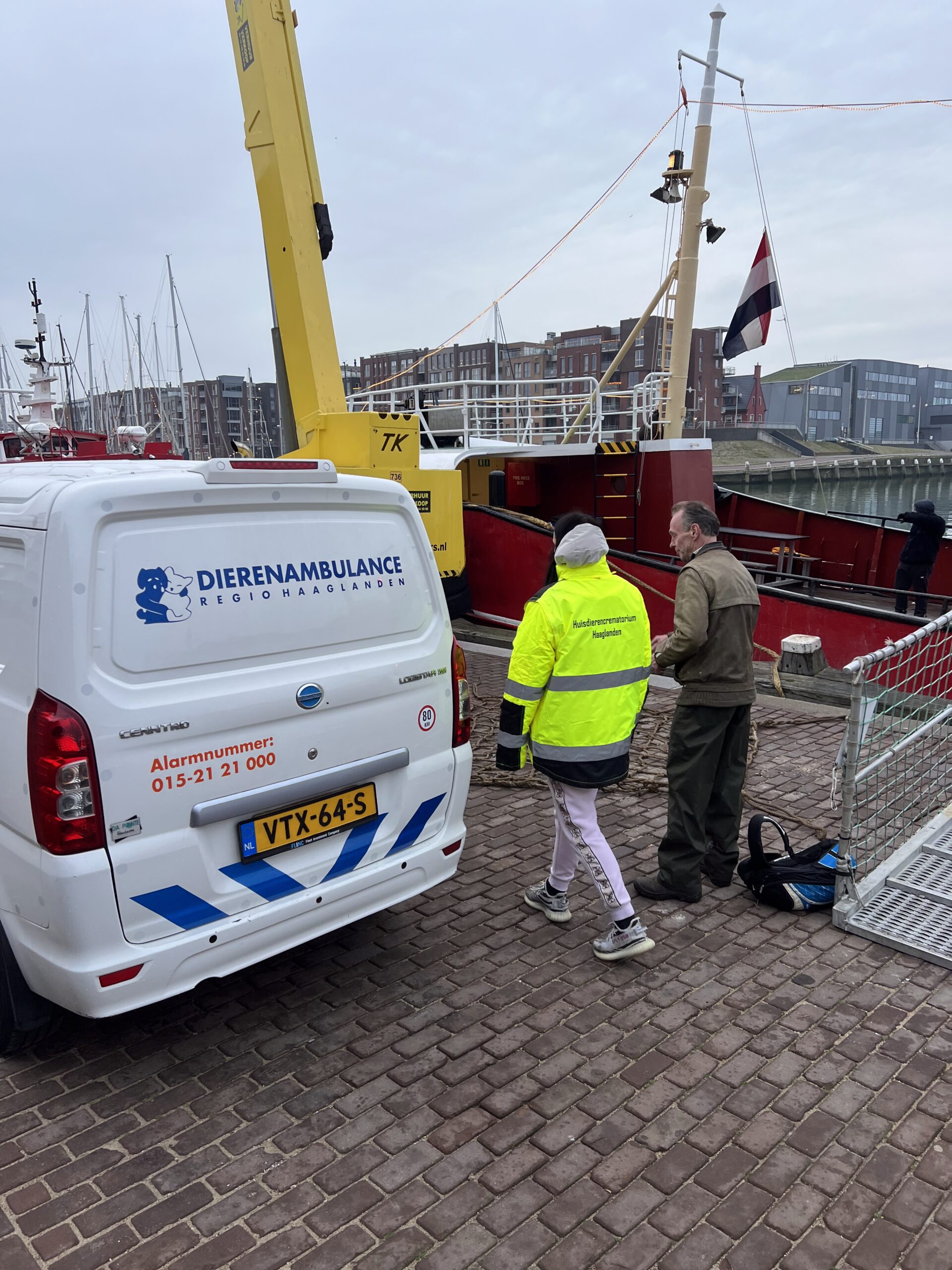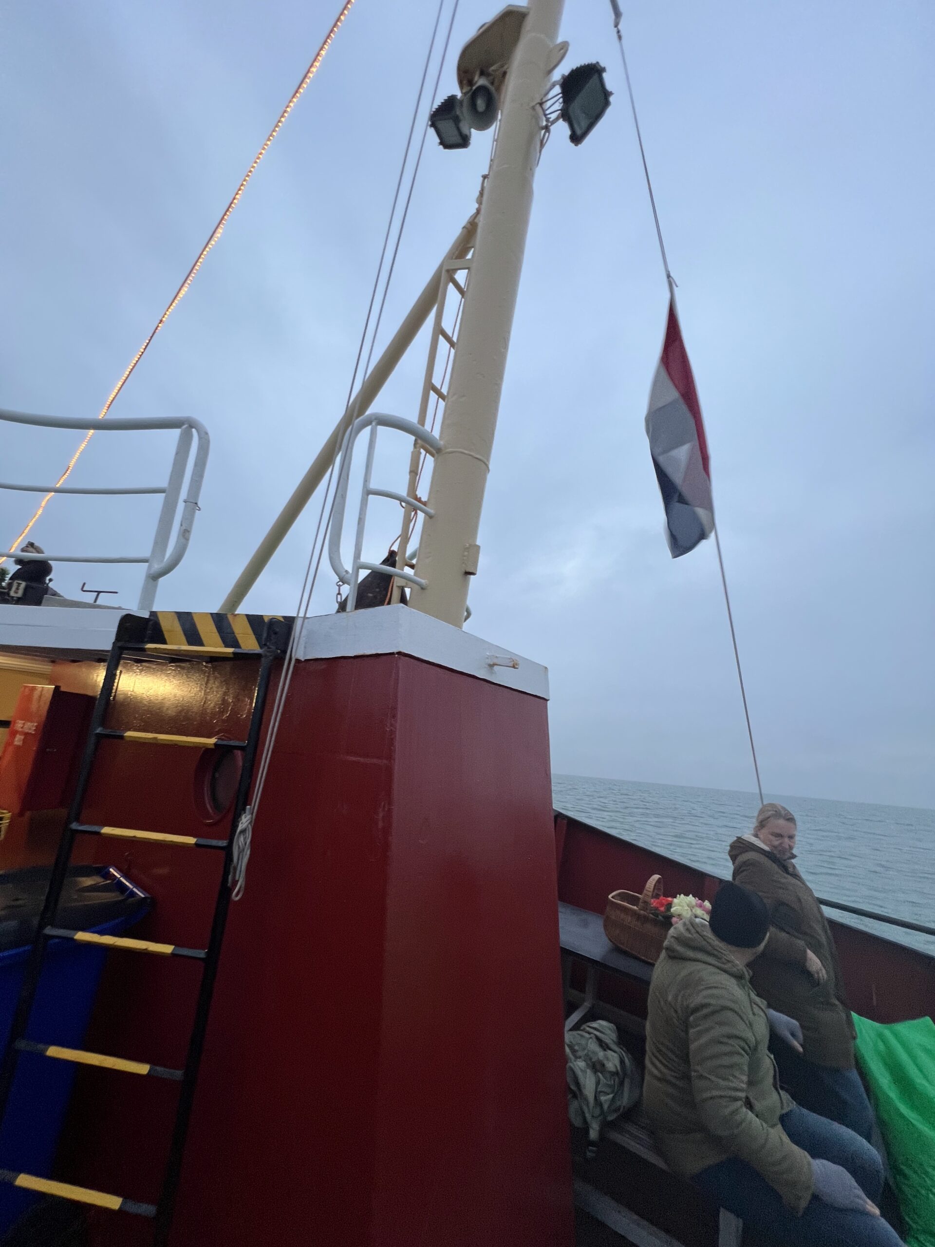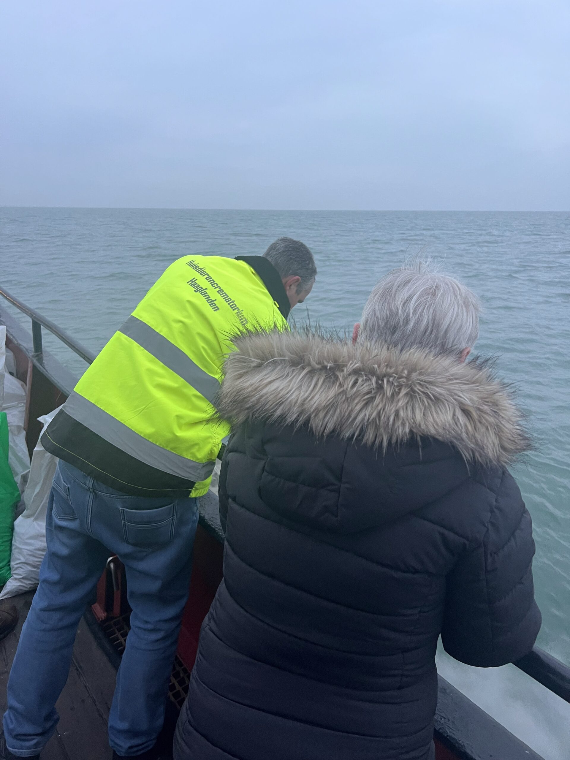 Net voor kerst verzamelden enkele medewerkers en vrijwilligers zich op de kade van de Scheveningse haven. Het was een mistige, donkere namiddag maar het bleef droog en de zee was rustig. De vlag hing half stok en op zee klonk een ferme scheepshoorn, ter ere van de lieve diertjes.